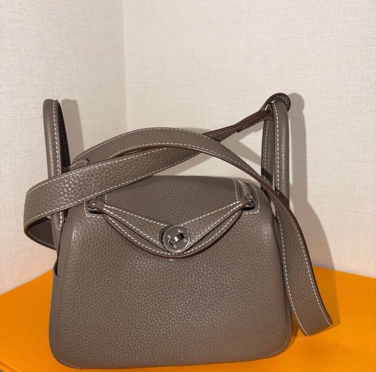 上品な本革エトゥープカラー(グレー)のレディース ショルダーバッグです。